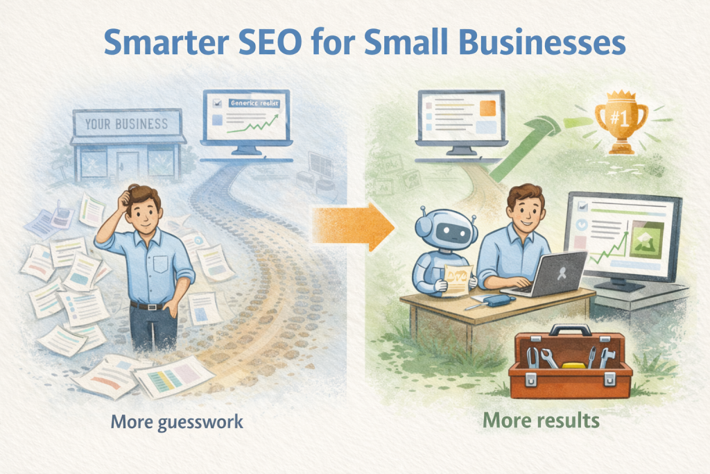 AI SEO sounds like a shortcut. You put in a prompt and publish the output, then rankings follow. That story is comforting when you’re running a small business with limited time and a long list of priorities, but it’s incomplete and a little dangerous. AI can help you compete, but only if you treat it as a way to make better decisions rather than a machine that replaces judgment.
